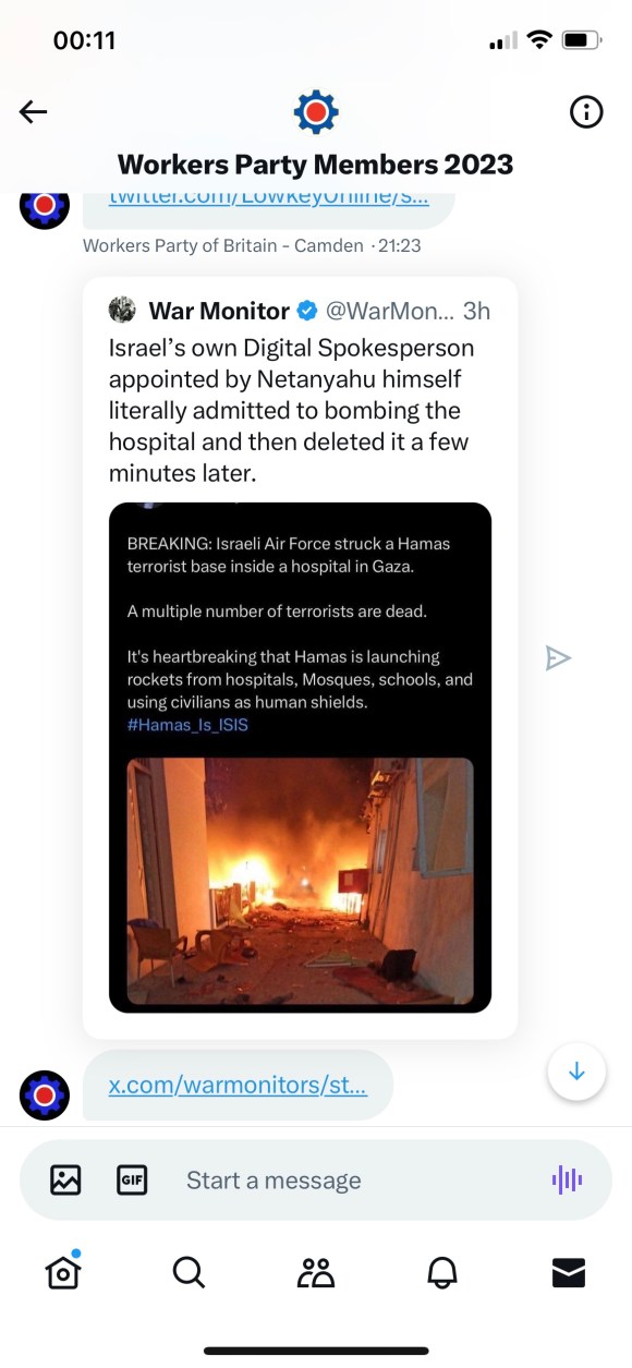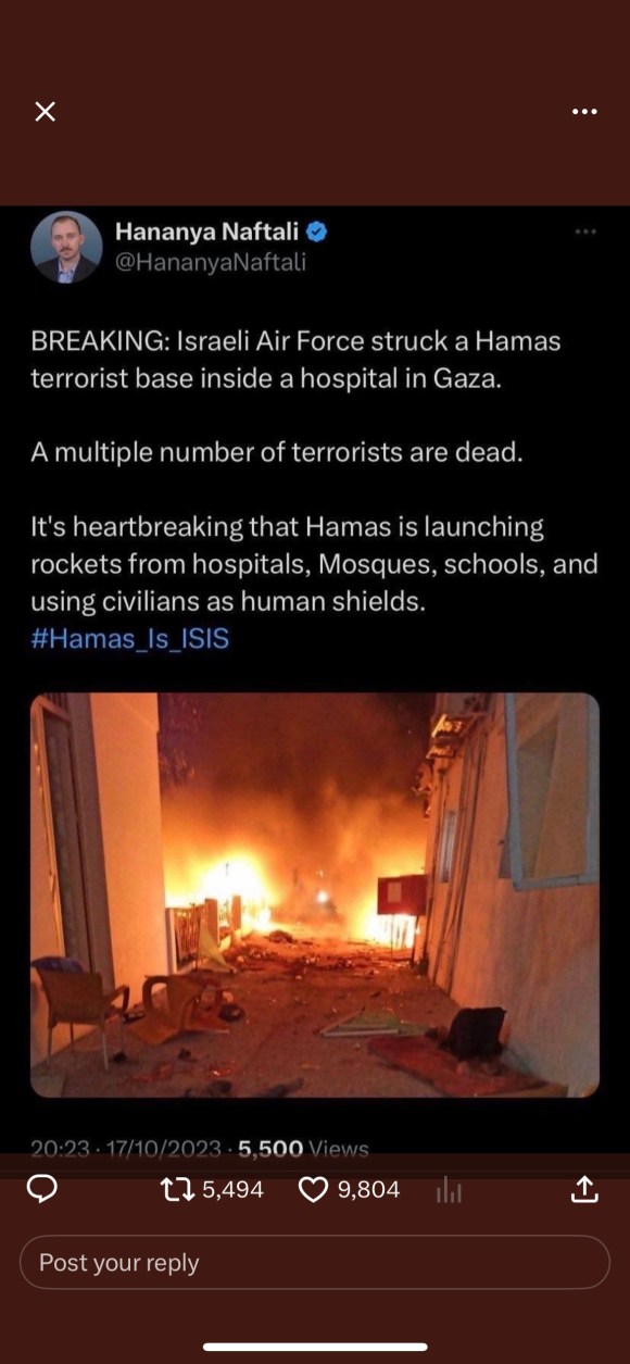 Categories Uncategorized Palestine, Israel; Israel just bombed Al Ahli Hospital while it was full of patients Post author By Pete's Library Post date October 17, 2023 No Comments on Palestine, Israel; Israel just bombed Al Ahli Hospital while it was full of patients x.com/lowkey0nline/status/1714328974946447531 https://x.com/markamesexiled/status/1714376706952188235?s=46&t=XgBsxv5LyxWhmBuQ2wK5bA https://x.com/marionawfal/status/1714419377305428295?s=46&t=XgBsxv5LyxWhmBuQ2wK5bA Share this: Share on X (Opens in new window) X Share on Facebook (Opens in new window) Facebook Like Loading... ← Coronavirus vaccines: McKernan: Plasmid Derived dsDNA Contamination in mRNA “Vaccines”; what was injected into the public wasn’t approved by regulators → Palestine, Israel, Iran: The Black Flag has been raised over Razavi Shrine in Mashhad, Khorasan province, Iran Leave a comment Cancel reply Δ