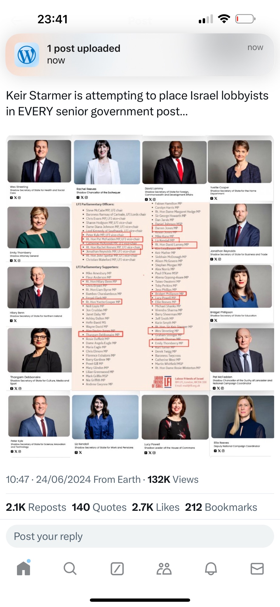 Categories Uncategorized Israel; U.K.; Keir Starmer is attempting to place Israel lobbyists in EVERY senior government post… Post author By Pete's Library Post date June 26, 2024 No Comments on Israel; U.K.; Keir Starmer is attempting to place Israel lobbyists in EVERY senior government post… x.com/kahlissee/status/1805175842894492002 Share this: Share on X (Opens in new window) X Share on Facebook (Opens in new window) Facebook Like Loading... ← FTP; Hiba Abu Taha ; Jordanian journalist; Sentenced To One Year In Prison For Exposing Jordan’s Ties With Israel. → Assange; 10 most controversial exposé by WikiLeaks founded by Julian Assange Leave a comment Cancel reply Δ