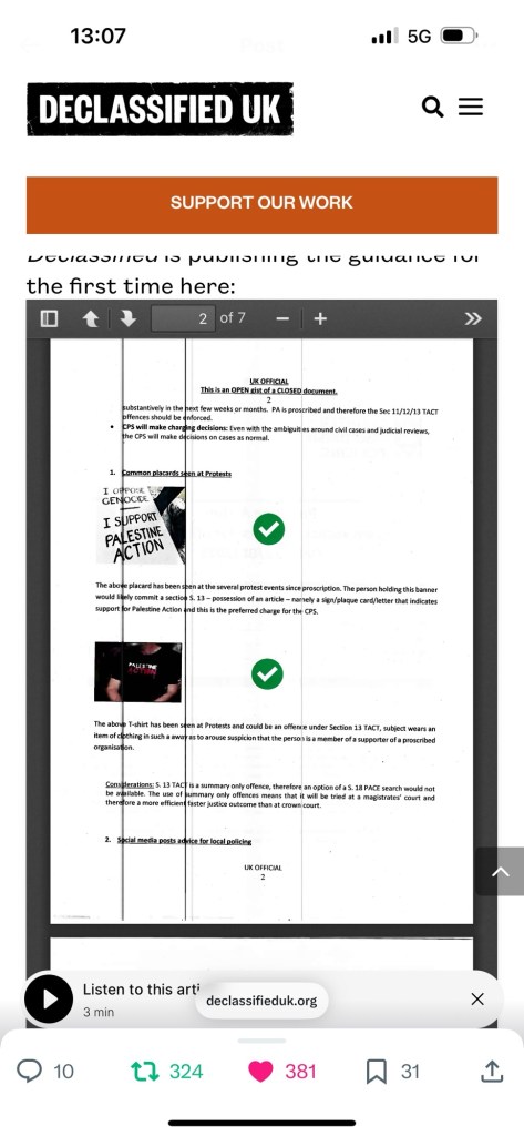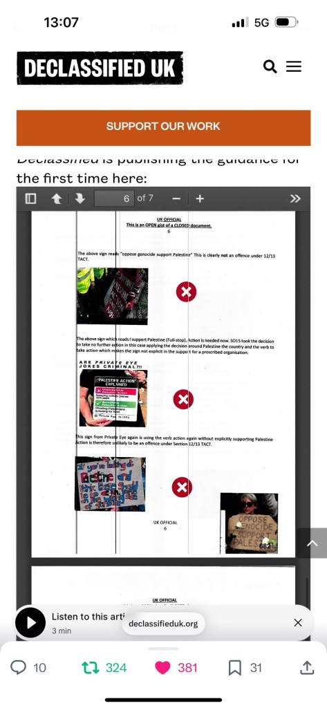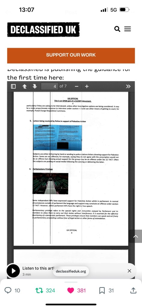 Categories Uncategorized Police watch; counter terrorism policing Palestine Action recent tactics guidance for officers/staff 28/08/25 Post author By Pete's Library Post date January 2, 2026 No Comments on Police watch; counter terrorism policing Palestine Action recent tactics guidance for officers/staff 28/08/25 Share this: Click to share on X (Opens in new window) X Click to share on Facebook (Opens in new window) Facebook Like Loading... ← Why I am on hunger strike in solidarity with Pal Action detainees | Human Rights | Al Jazeera → Anatomy – General knowledge Leave a comment Cancel reply Δ